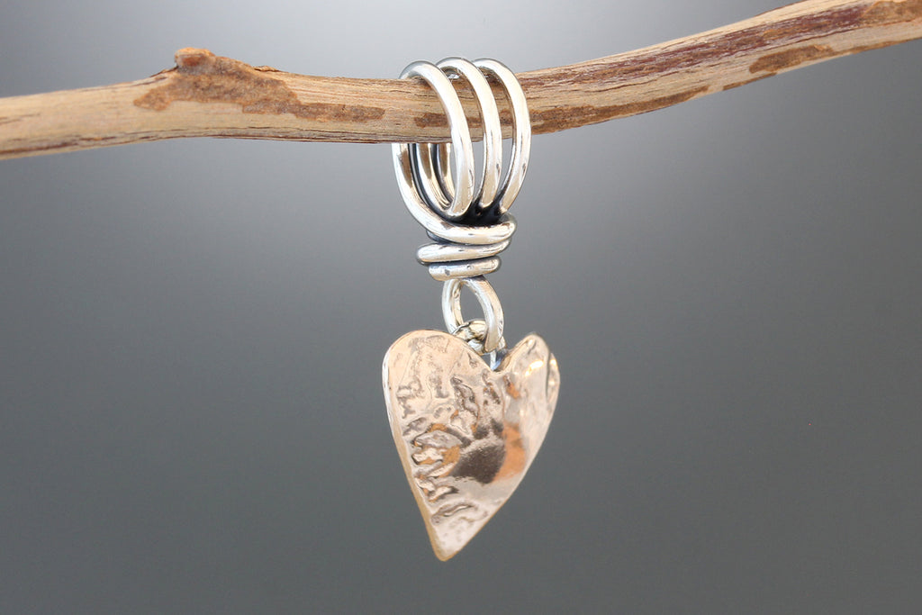 This sweet little heart pendant is so dainty and delicate! The heart hangs from a handmade vine inspired sterling silver bail to wear with your favorite chain! It is available with a bronze or sterling silver heart. Both have a sterling silver bail.