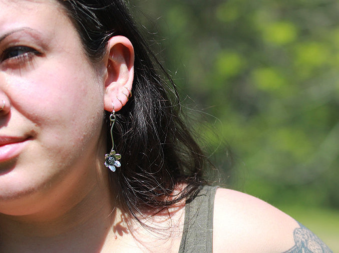 These beautiful earrings feature a lotus flower at the end of a vine. These are the perfect balance of elegance and drama.